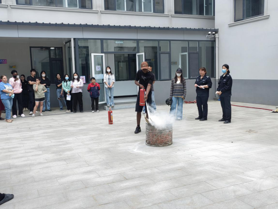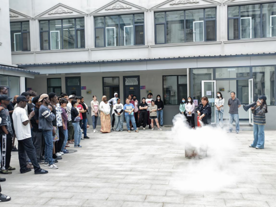 安全工作处吴翠霞详细讲解消防知识,指导外国留学生辨识安全出口、规范报警流程,并演示灭火器“提、拔、握、压”使用方法。外国留学生在指导下进行了逃生演习并轮流操作灭火器扑灭模拟火源,亲身体验应急处置流程。来自巴基斯坦的学生感叹:“实战演练让我真正理解了火灾中逃生和灭火要领。”