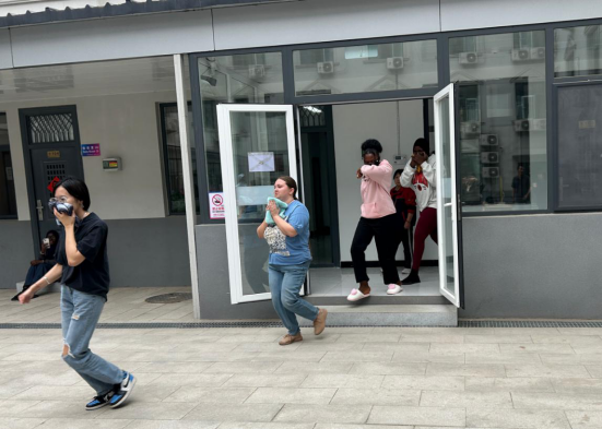 为提升外国留学生应急避险能力,我院在34号留学生公寓组织地震消防综合演练,在校师生参与。活动通过“理论+实操”形式,强化学生防灾技能,深化校园安全教育。