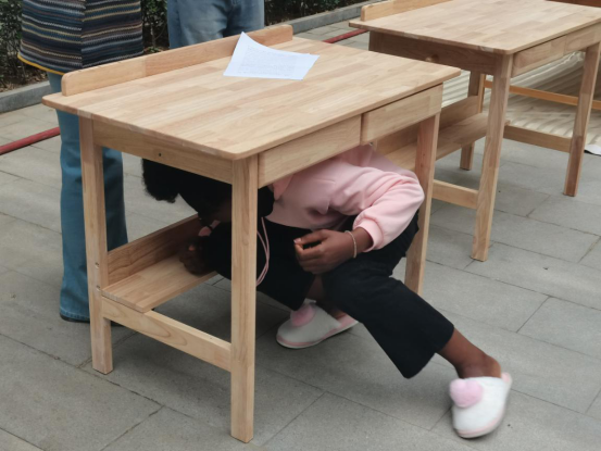 学院书记、副院长曹海飞现场指导,讲解了地震逃生要点,并演示“伏地、遮挡、抓牢”标准动作。师生们在公寓内模拟地震场景,迅速躲避至安全区域,用双臂护住头部,沉浸式掌握自救技巧。