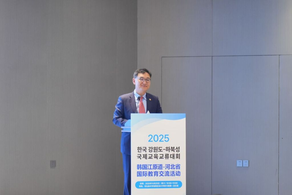 上午 10 时,交流活动正式启动。韩国江原特别自治道国际关系大使曺永俊(JO YUNGJOON)率先分享了江原道国际教育经验与规划;河北美术学院校长甄忠义表示,河北美术学院重视国际教育交流,此次活动为师生搭建了优质平台,期待与江原道高校在艺术教育、人才培养领域深化合作。随后,江原大学、延世大学、翰林大学代表依次介绍江原道教育资源及人才政策。